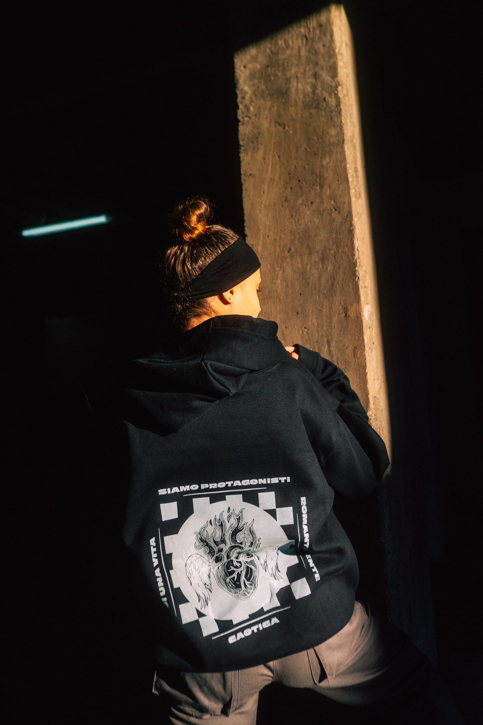 A demás, intentamos ser amigables con el medio ambiente, haciendo el corte de las prendas con la técnica «zero waste», por eso también pensamos nuestro packaging como tote bag de friselina utilizable en la vida cotidiana.