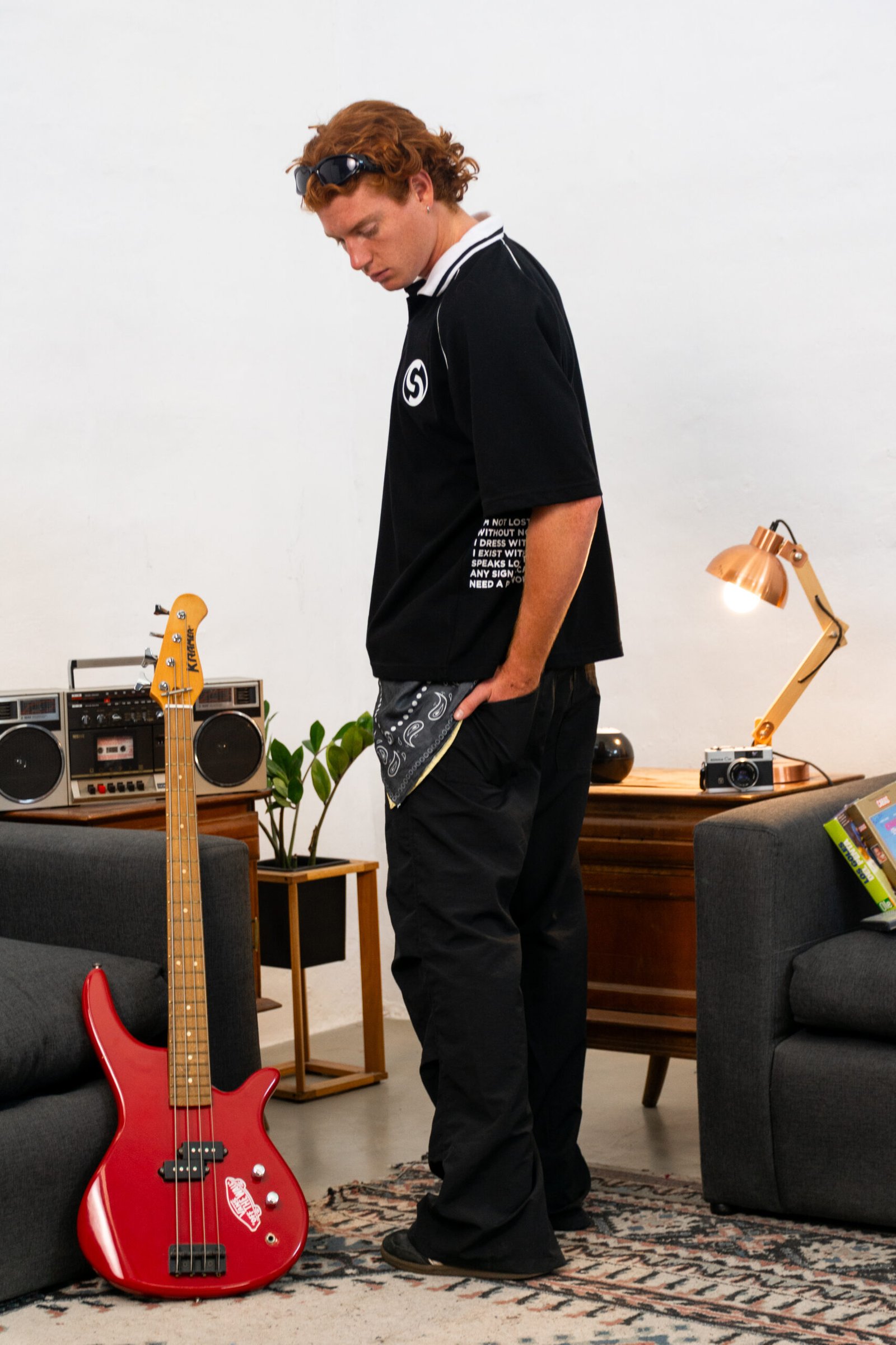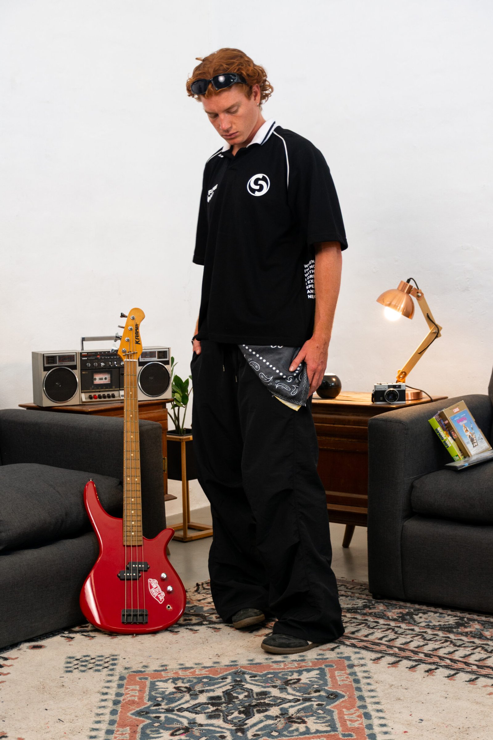 Pantalón wide fit, tiro medio/bajo con elástico y cordón regulador en cintura. Pinzas en la parte inferior que aportan movimiento. Diseño minimal con detalles en plateado y pasador de Di Coccia en el bolsillo trasero izquierdo.